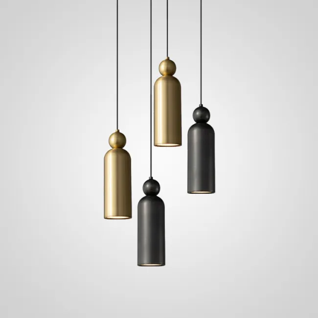 Серия подвесных светодиодных светильников в виде комбинации скругленного цилиндра и шара из настоящей латуни