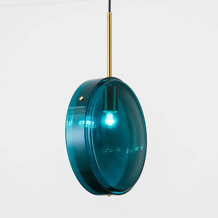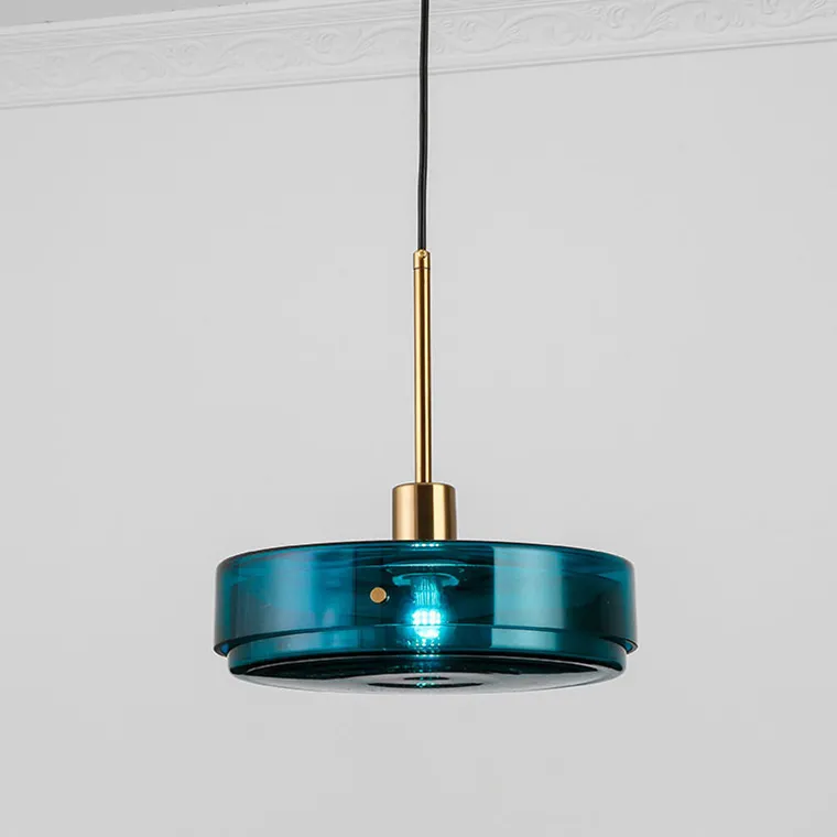 Подвесной светильник из синего стекла на металлическом каркасе с регулируемым шнуром подойдет как основной источник света, так и локальный. Яркое цветовое пятно оживит классический спокойный интерьер или же впишется в общую обстановку стиля модерн. Синее стекло не отяжеляет пространство и не забирает «воздушности» припотолочной зоны. Подходит как для высоких потолков при вертикальном плафоне, так и для низких потолков при горизонтальном.