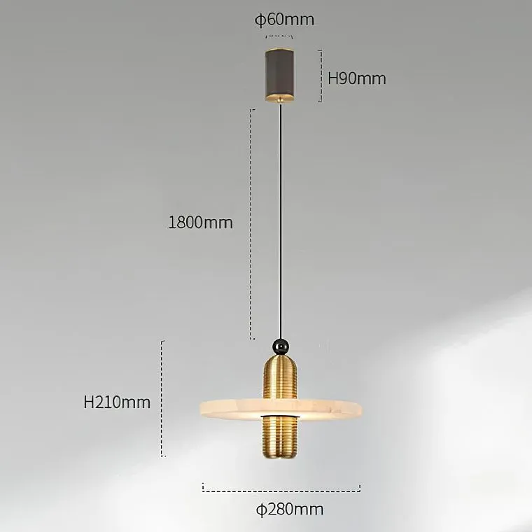 Этот светильник – скульптурный объект, который преобразит ваш интерьер. Мраморный диск мягко подсвечен рассеянным потоком, словно дымка окутывает его, добавляя глубину и загадочность. Корпус, выполненный в благородном латунном цвете, украшен поперечными кольцами, что создает захватывающую игру света и тени. Завершает композицию элегантный черный декоративный шар, расположенный сверху, добавляя нотку сдержанной роскоши.