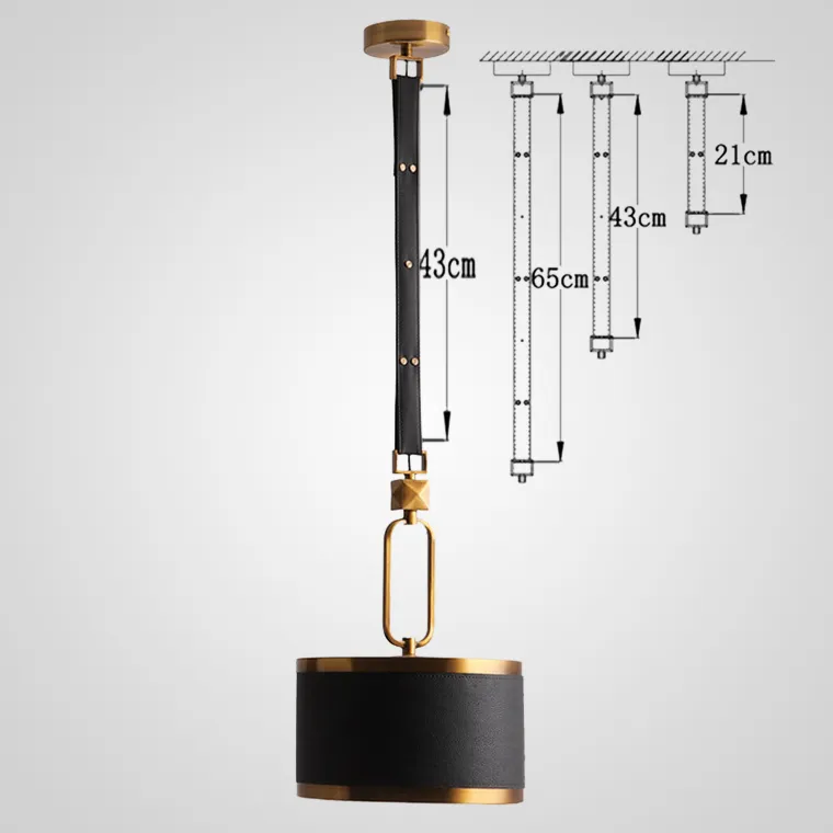 Светильник на подвесном кожанном ремне, с возможностью регулировки по длине, с разными формами плафона в стиле Лофт