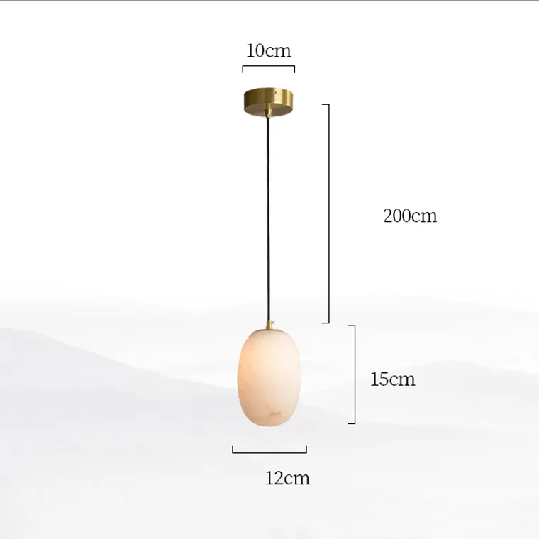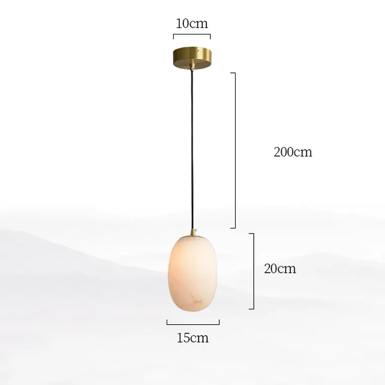 Подвесной светильник с овальным плафоном из натурального белого мрамора