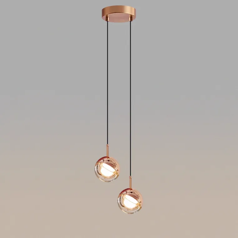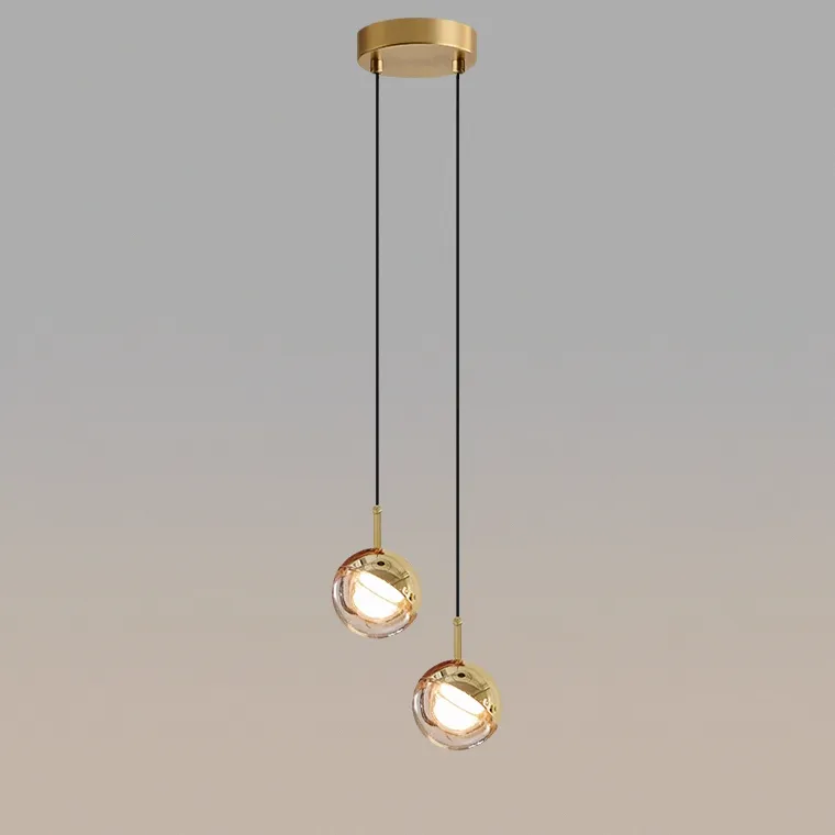 Готовая комбинация подвесных светодиодных светильников c двумя полупрозрачными шарообразными плафонами