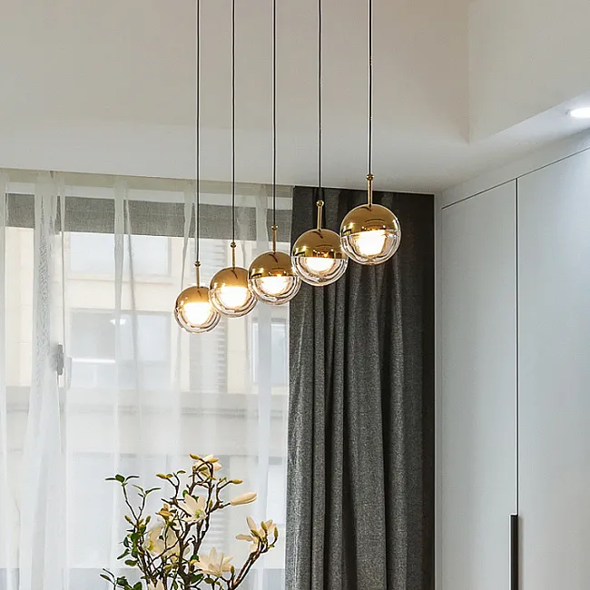 Готовая комбинация подвесных светодиодных светильников c двумя полупрозрачными шарообразными плафонами