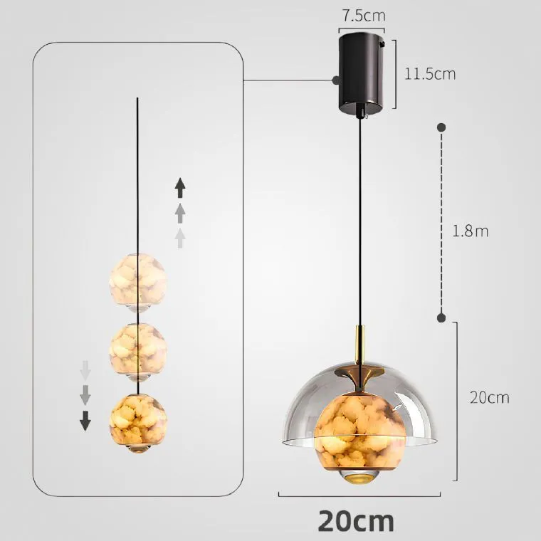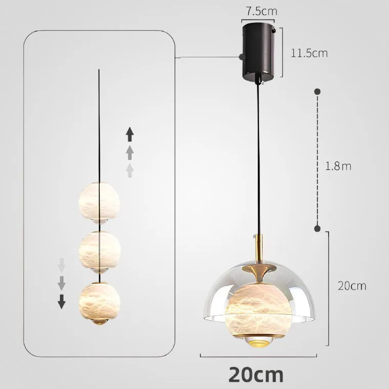 Серия подвесных светильников с двойным плафоном купольной формы из стекла и мрамора с линзированным источником света
