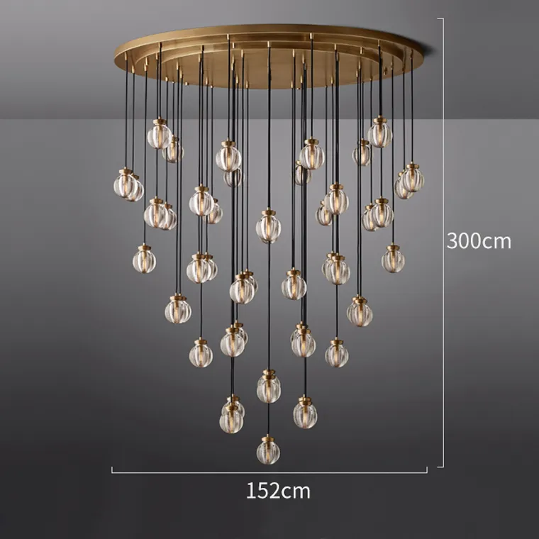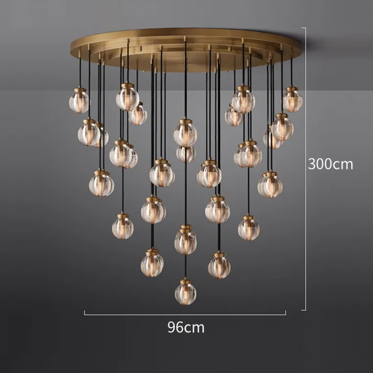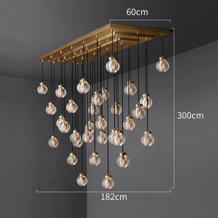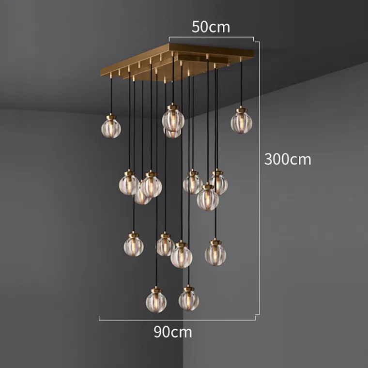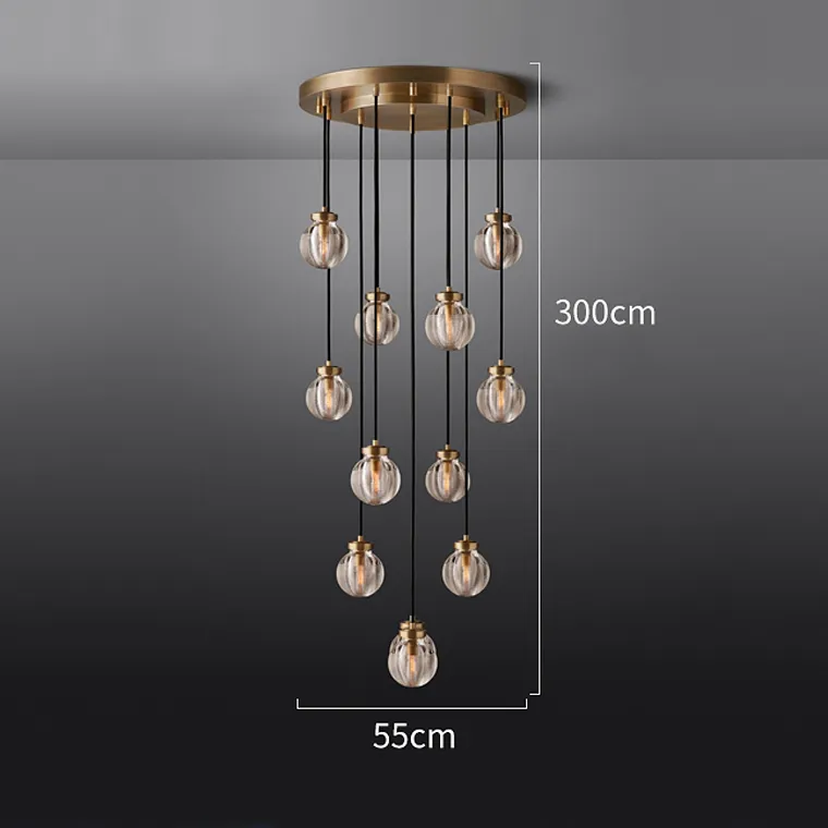 Готовая комбинация подвесных светильников с шарообразными плафонами из рифленого хрусталя