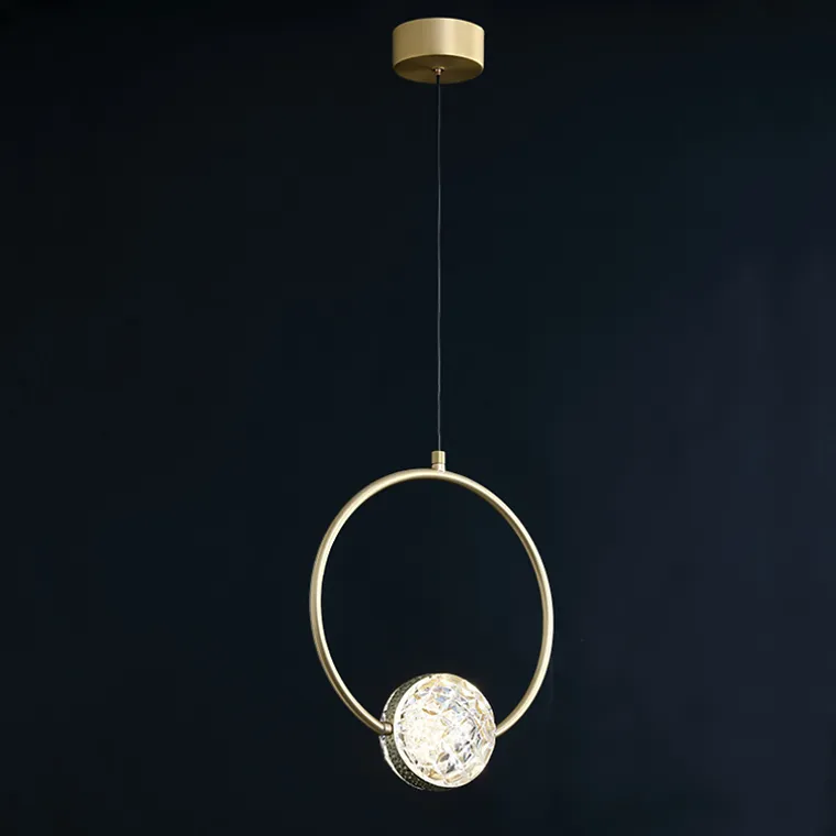 Подвесной светильник с рельефным шарообразным плафоном из хрусталя на металлическом кольце