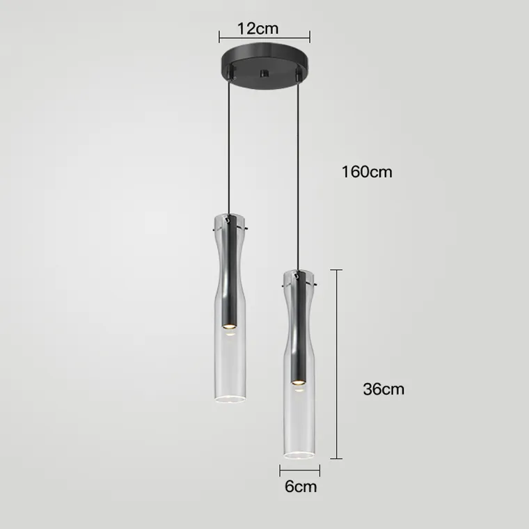 Готовая комбинация подвесных светодиодных светильников с двумя цилиндрическими плафонами в стеклянном корпусе в форме песочных часов