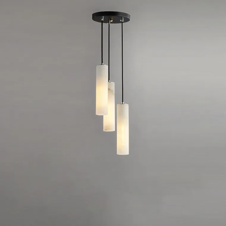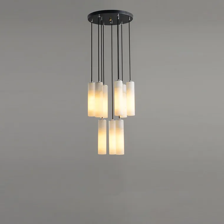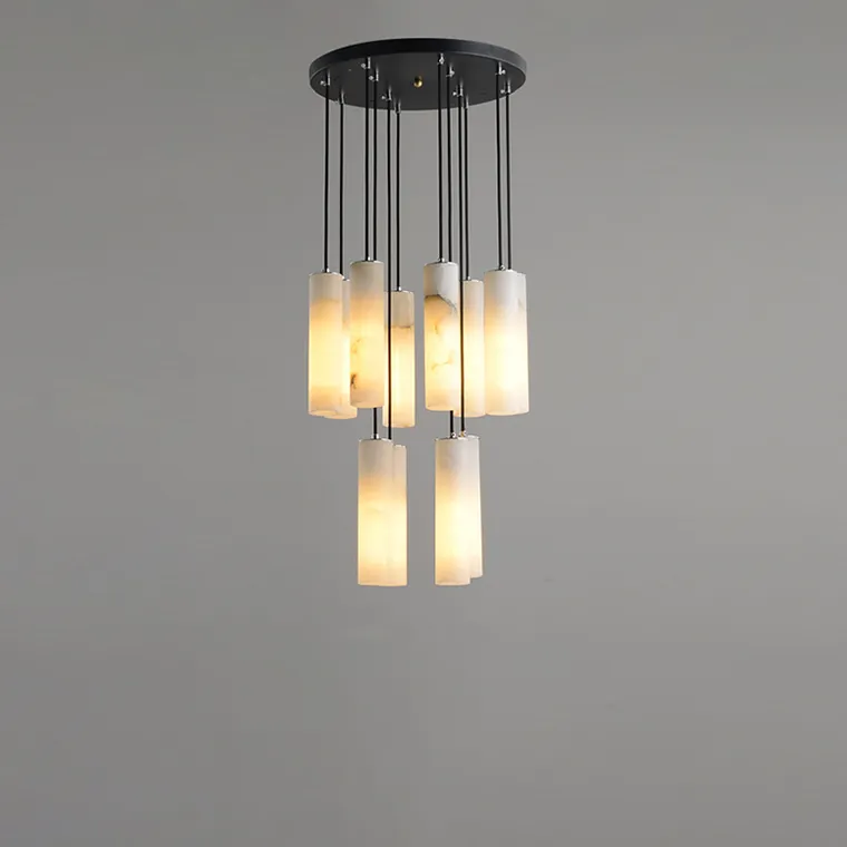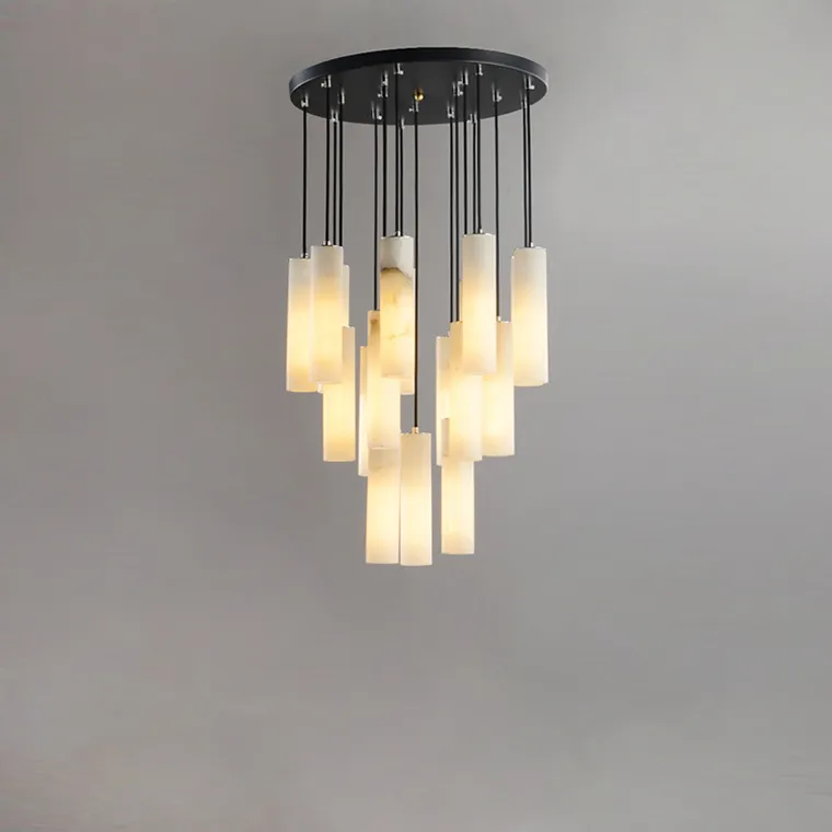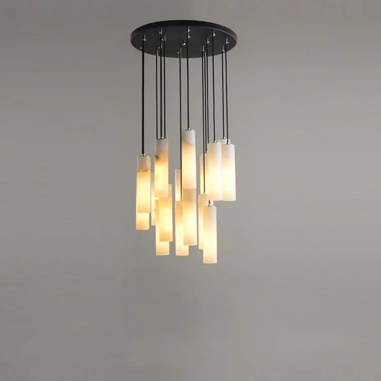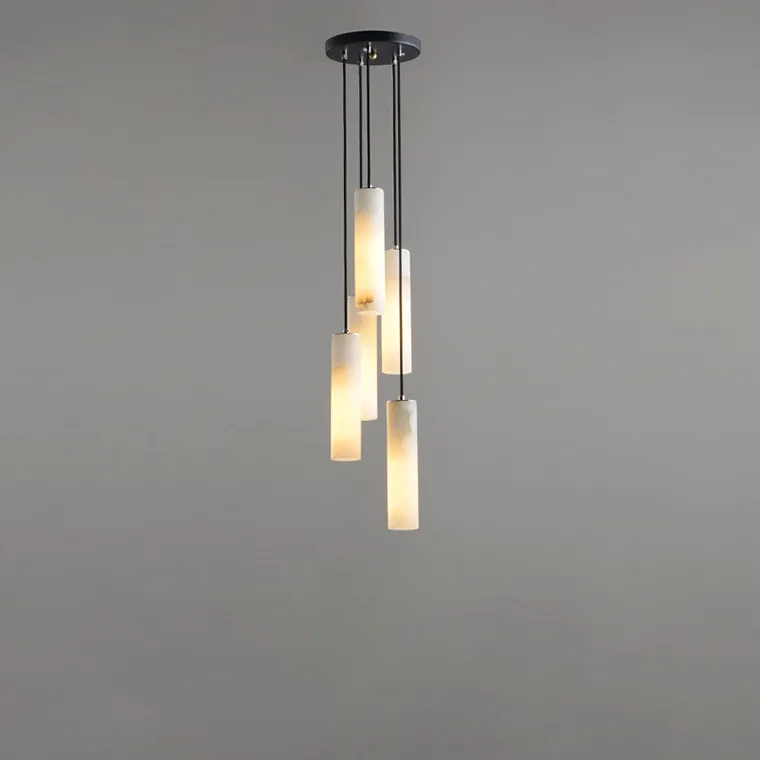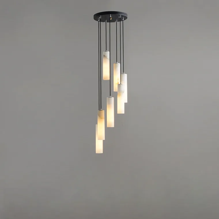 Линейка дизайнерских светильников с плафоном из мрамора на подвесе