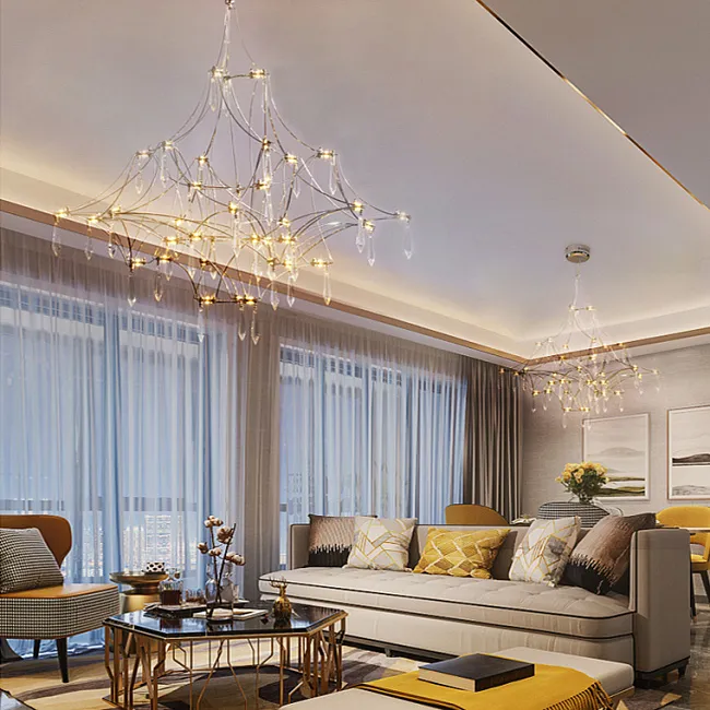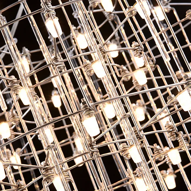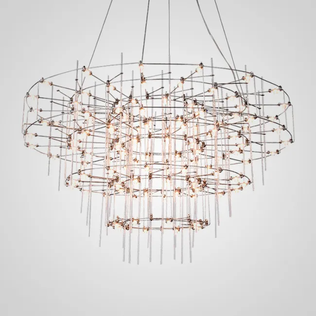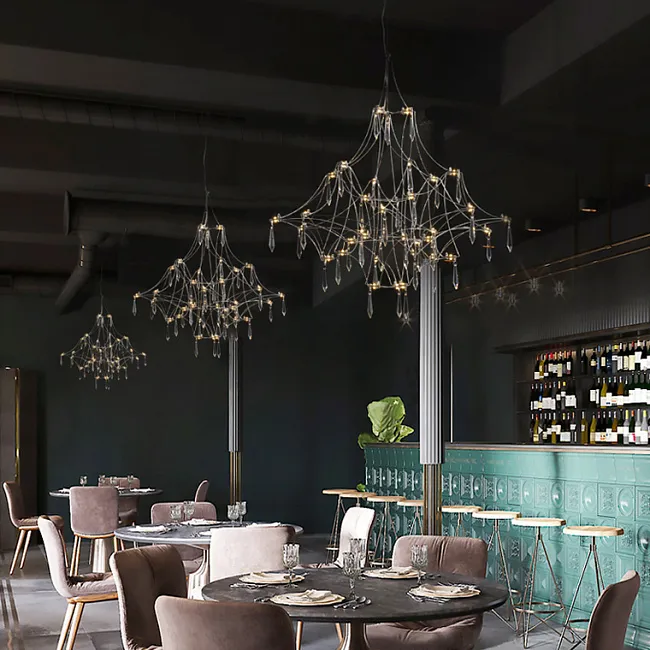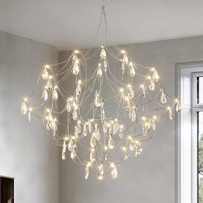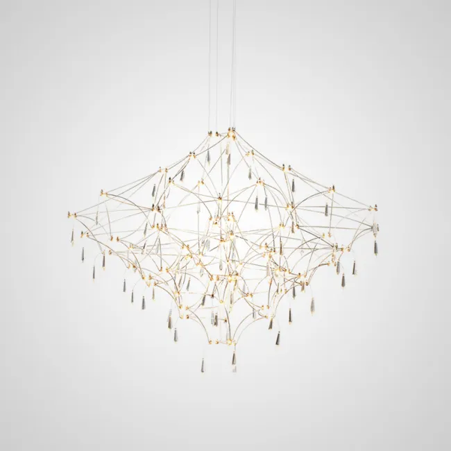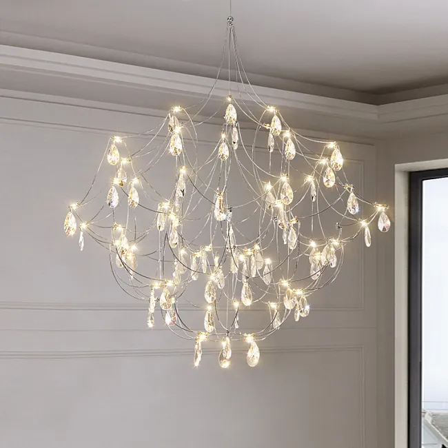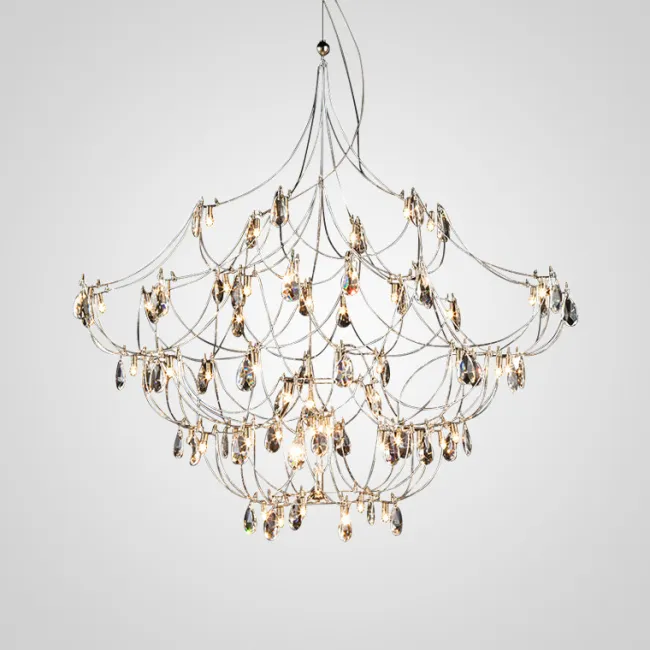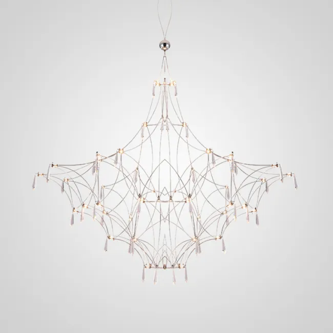 Подвесной светильник со светодиодными источниками света на ажурном металлическом каркасе с подвесками в виде хрустальных камней