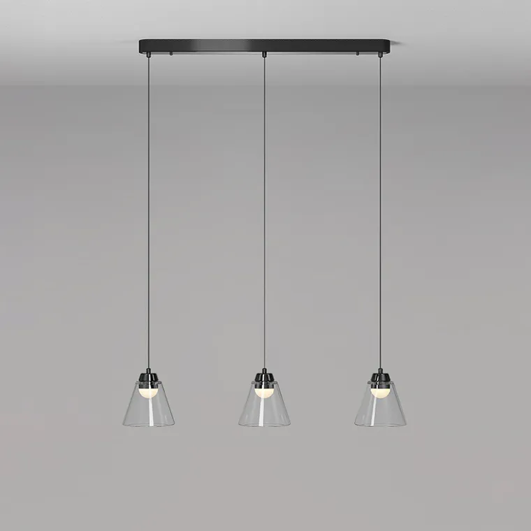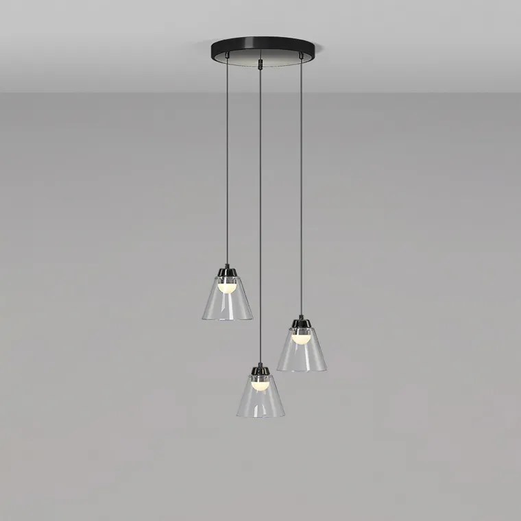 Готовая комбинация подвесных светодиодных светильников c округлыми источниками в прозрачных конических рассеивателях