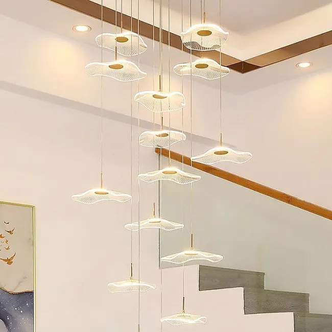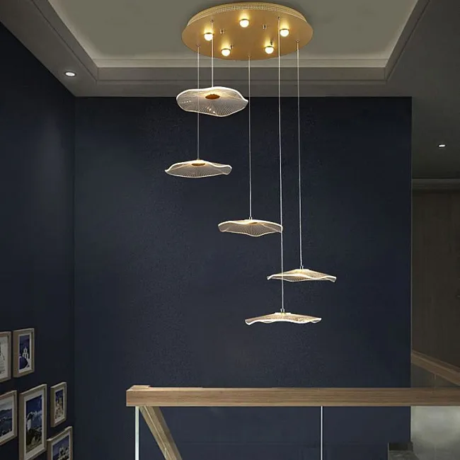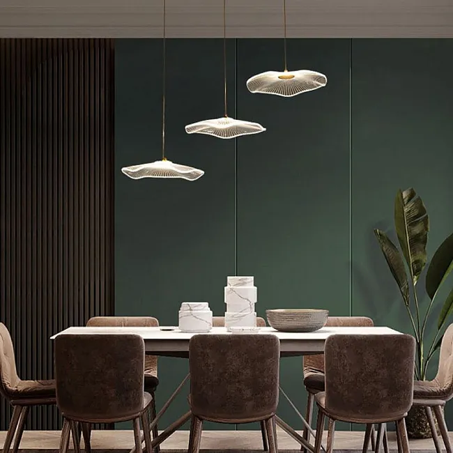 Готовая комбинация подвесных светодиодных светильников c округлыми источниками в прозрачных конических рассеивателях