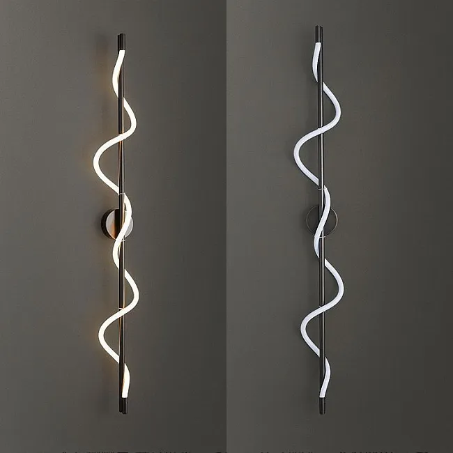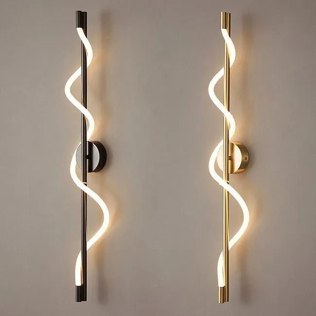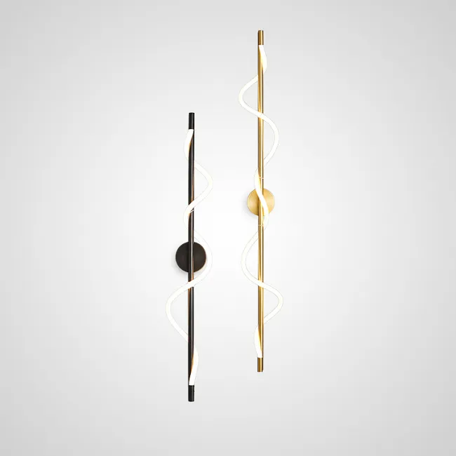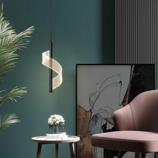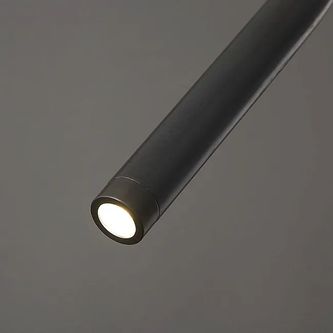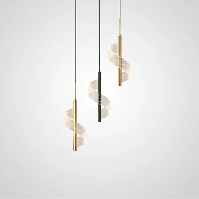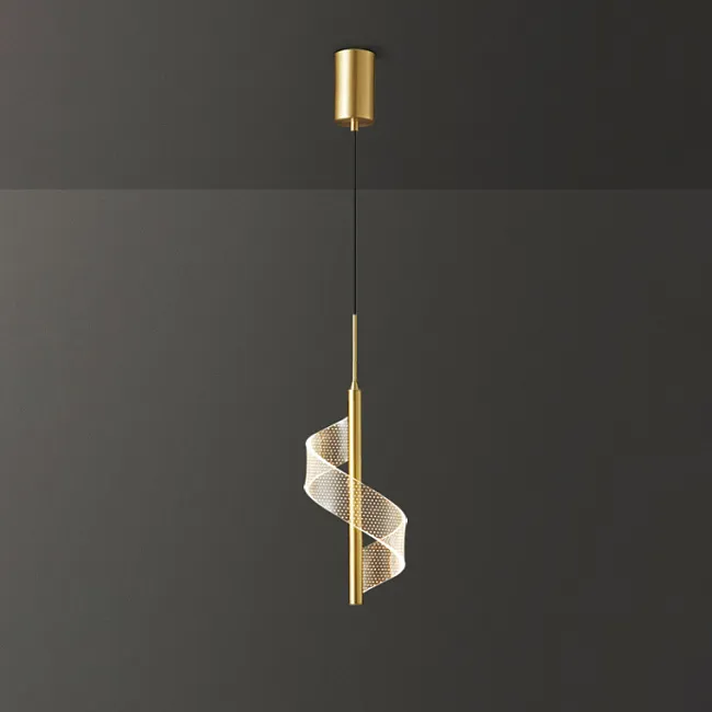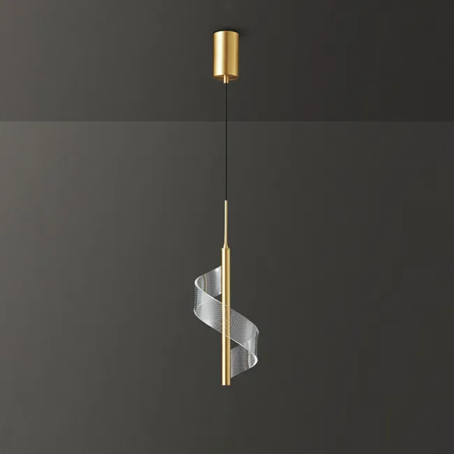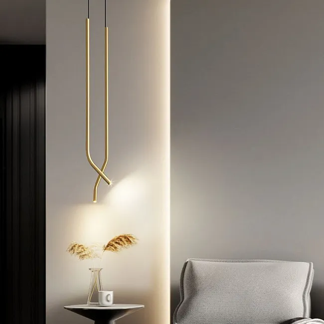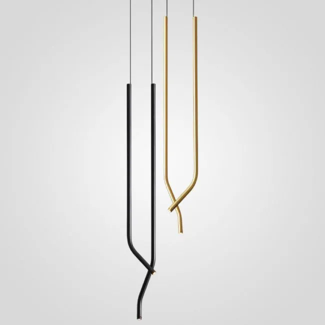 Подвесной светодиодный светильник в виде изогнутого светящегося шнура на цилиндрическом корпусе из латуни