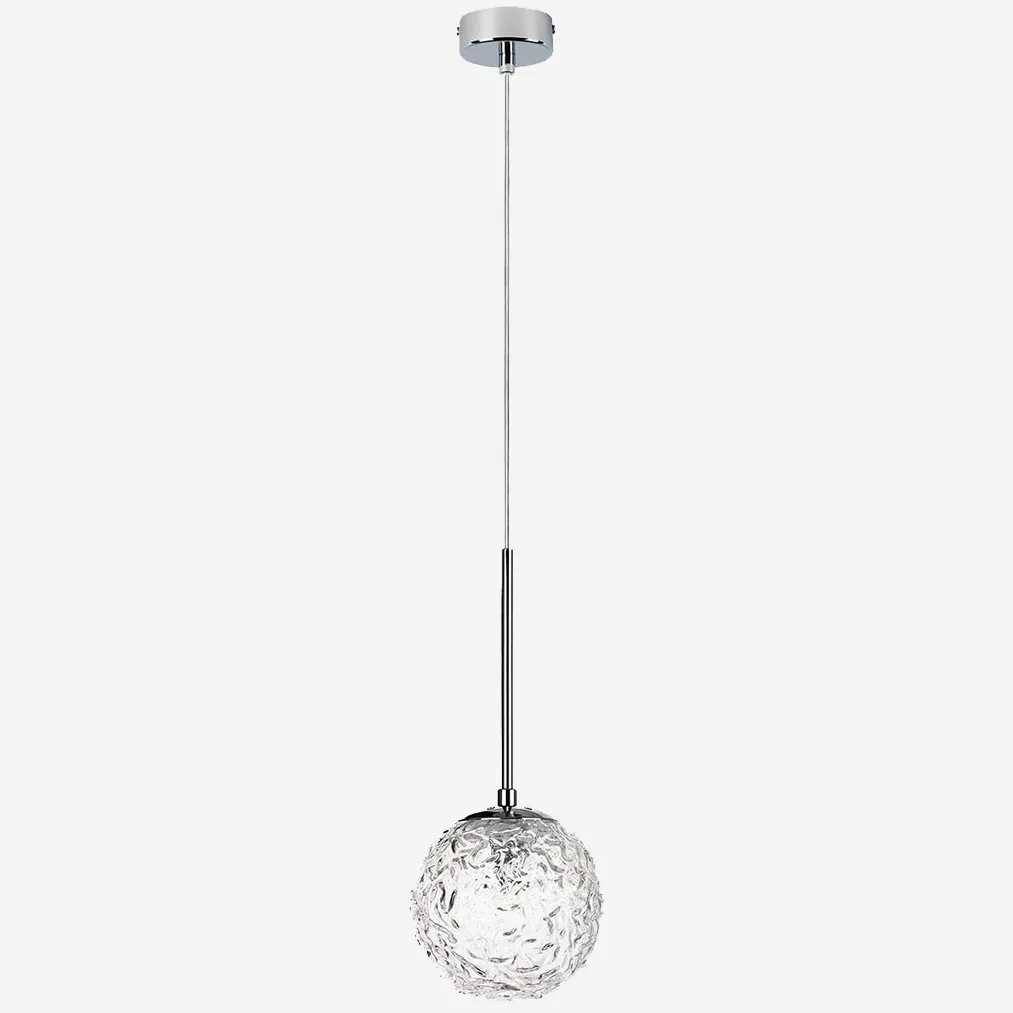Подвесной светильник шар с хромированным каркасом и фактурным плафоном