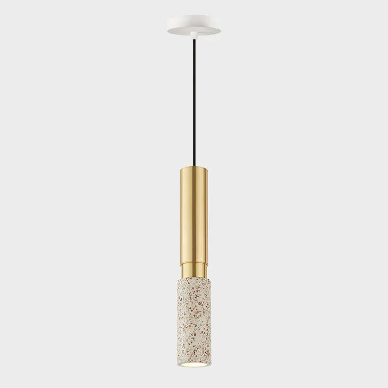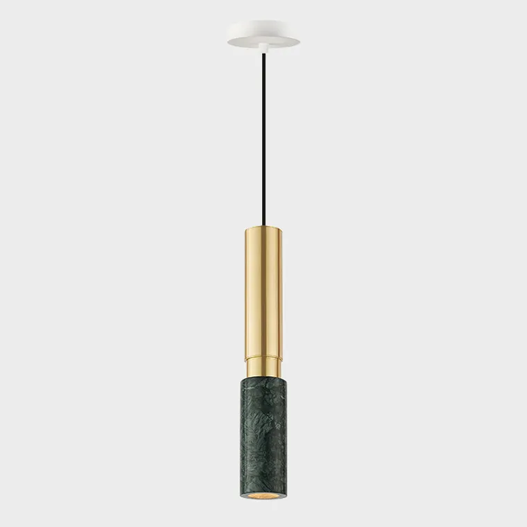 Подвесной светильник MERCY-A из мрамора и металла в форме двух цилиндров, с точечным направленным световым потоком.