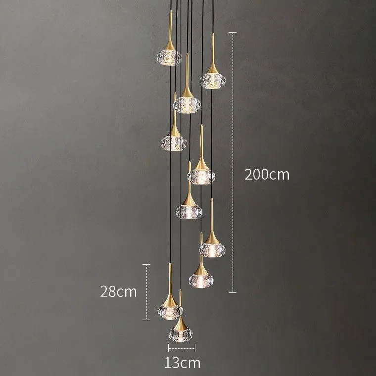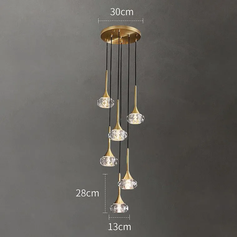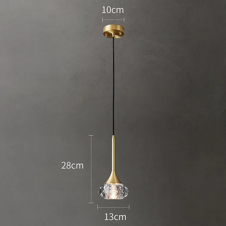 Подвесной светильник с ограненным хрустальным плафоном на латунной стойке