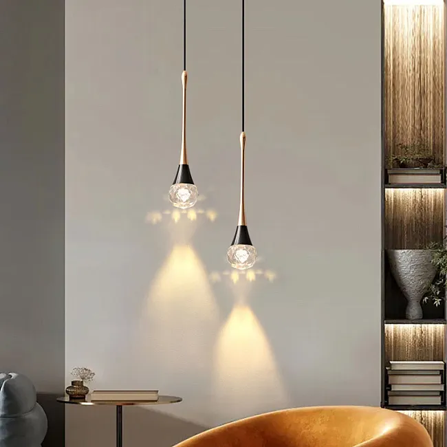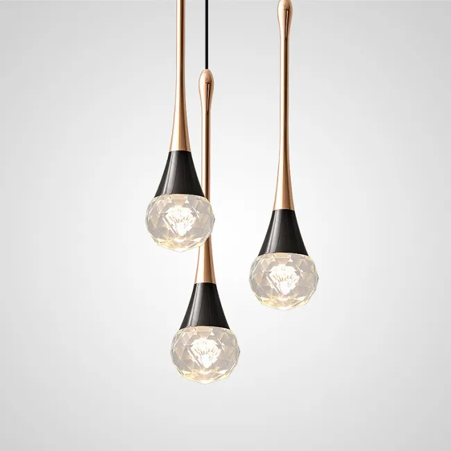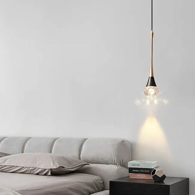 Подвесной светильник с ограненным хрустальным плафоном на латунной стойке