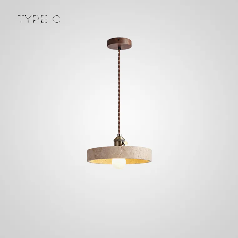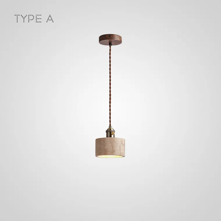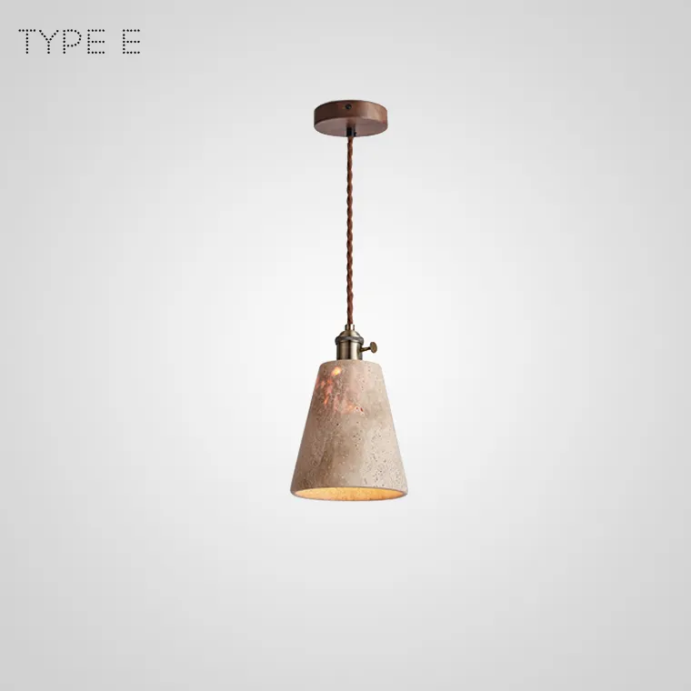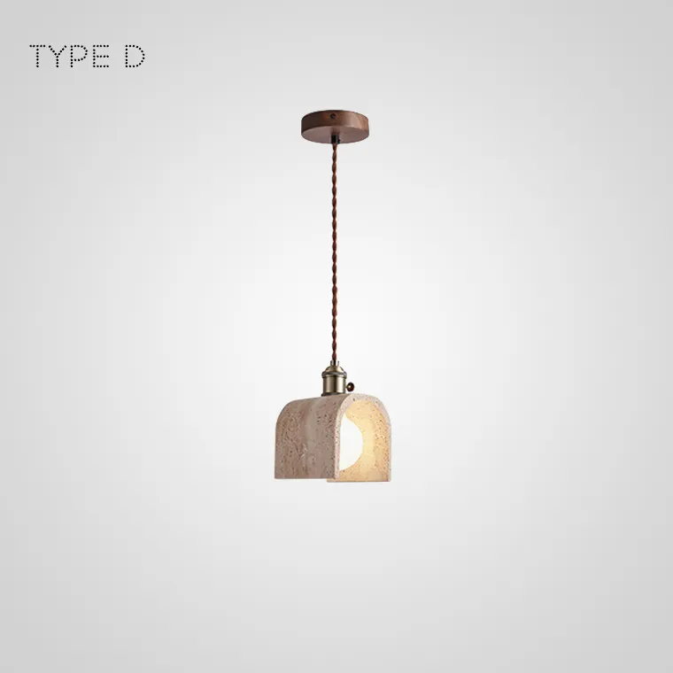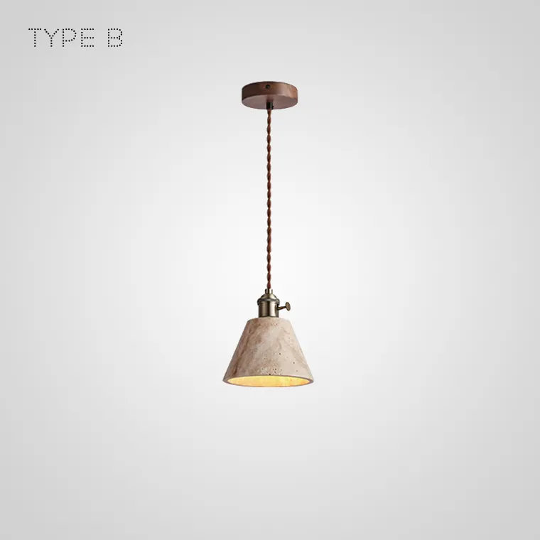 Серия подвесных светильников с каменным корпусом геометрической формы и деревянным креплением