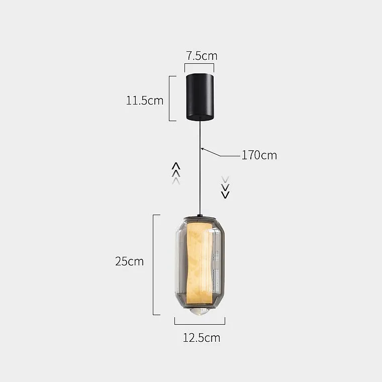 Подвесной светильник с цилиндрическим двойным плафоном из стекла и мрамора на регулируемом подвесе.