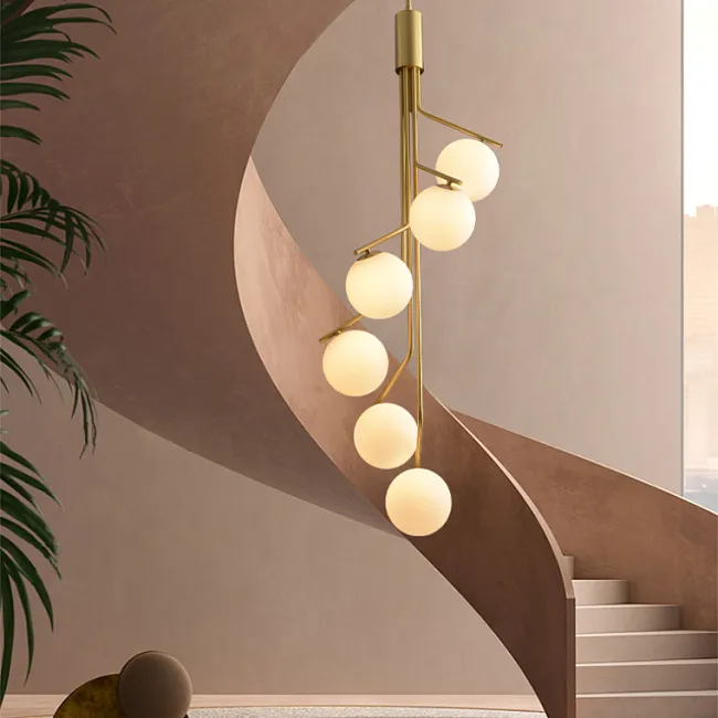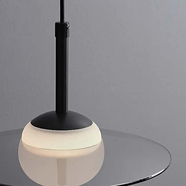 Подвесной светильник с цилиндрическим двойным плафоном из стекла и мрамора на регулируемом подвесе.