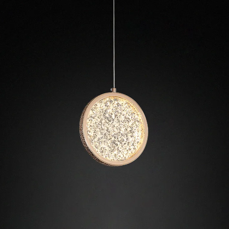 Подвесной светодиодный светильник с круглым плоским плафоном из рельефного акрила и металла