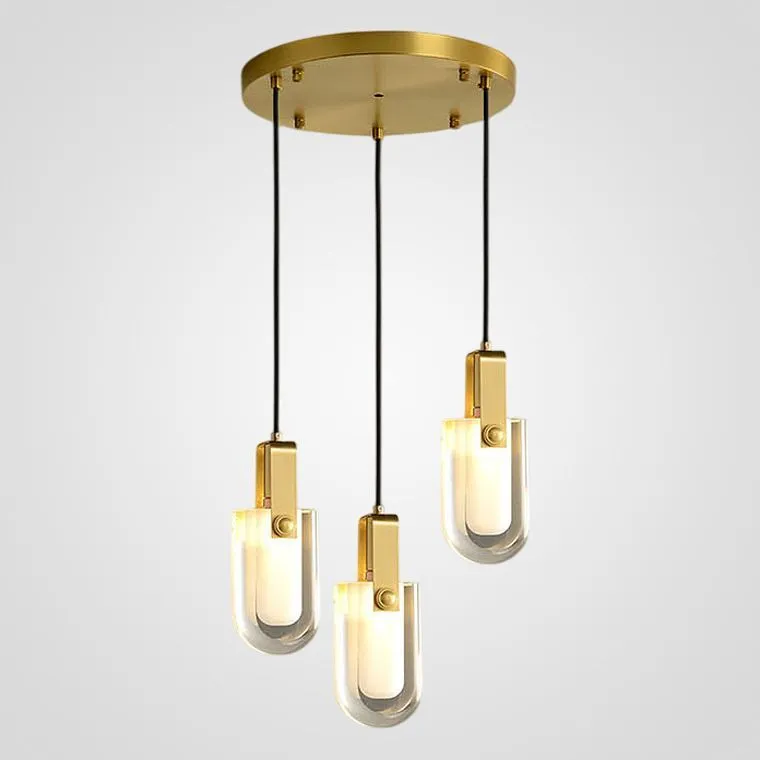 Готовая комбинация подвесных светильников с белым плафонами в скругленных хрустальных слитках