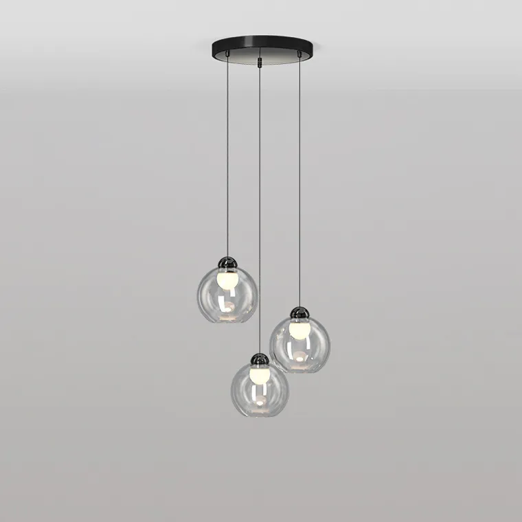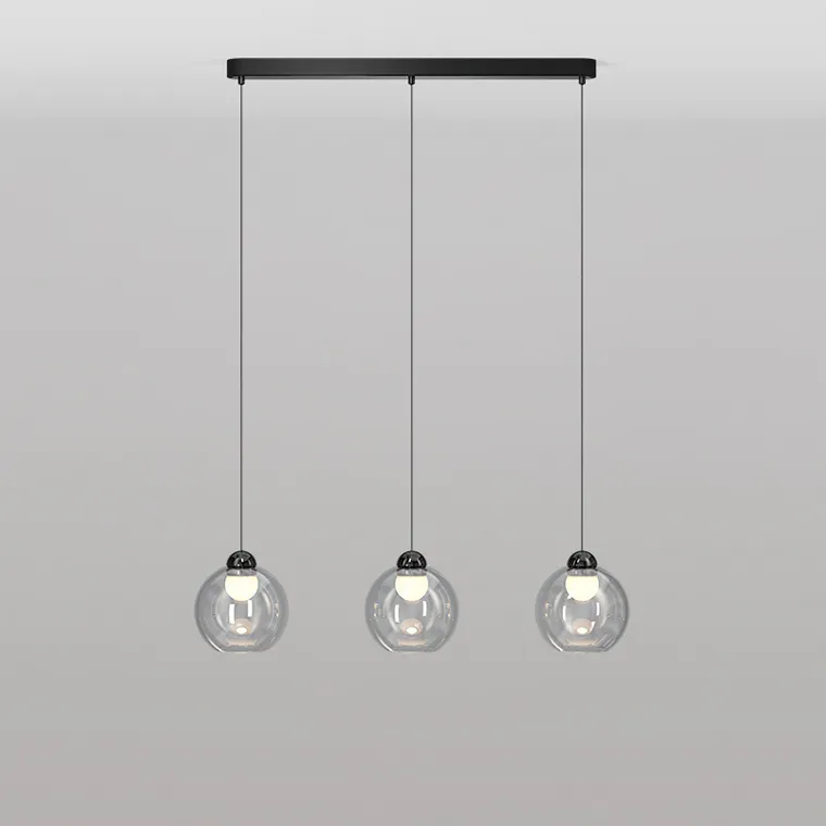 Готовая комбинация подвесных светодиодных светильников c шарообразными плафонами из прозрачного стекла