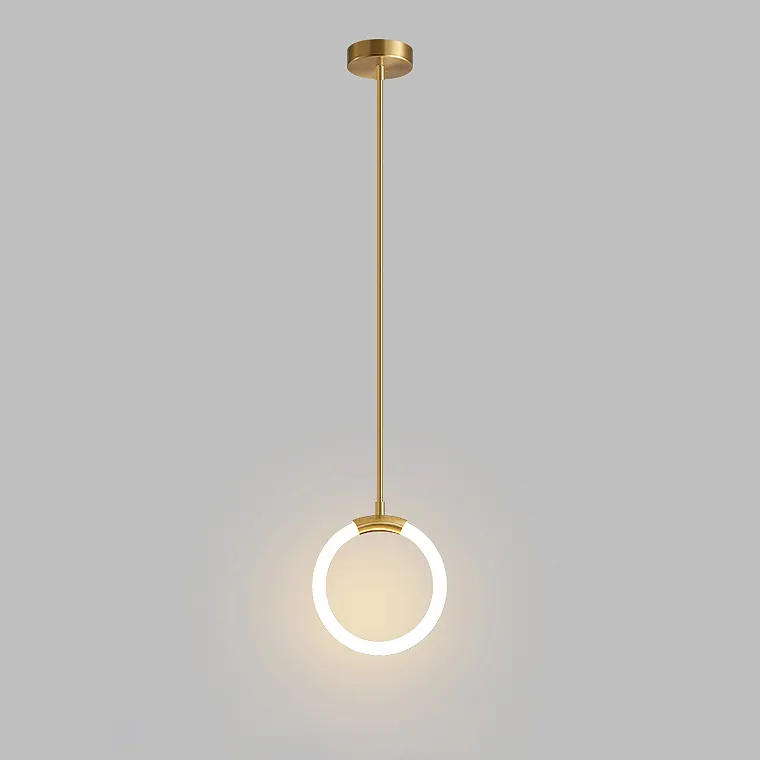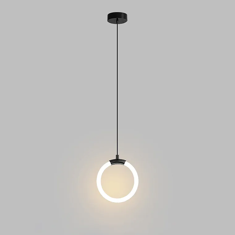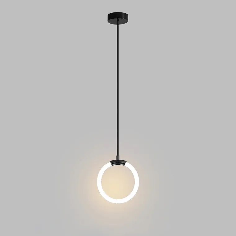 Серия светодиодных светильников в виде светящегося кольца на стойке и подвесном тросе