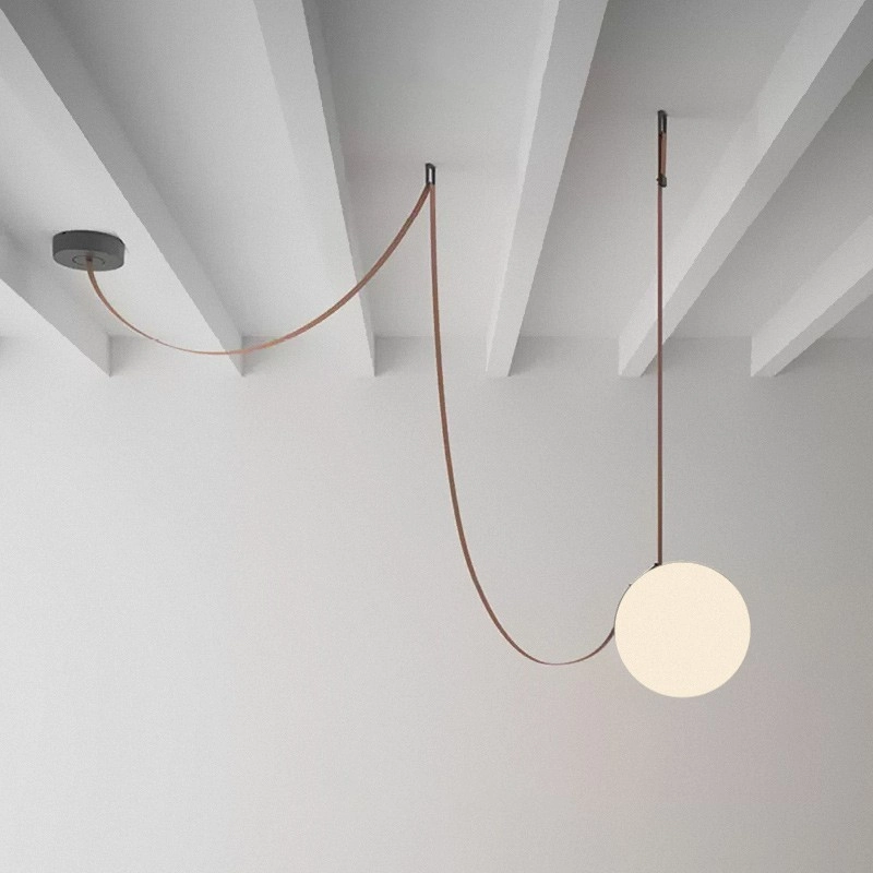 С его помощью вы сможете создать неповторимую атмосферу уюта и комфорта. Белые шарообразные плафоны из стекла на красных текстильных ремнях привлекают внимание и вызывают восхищение.