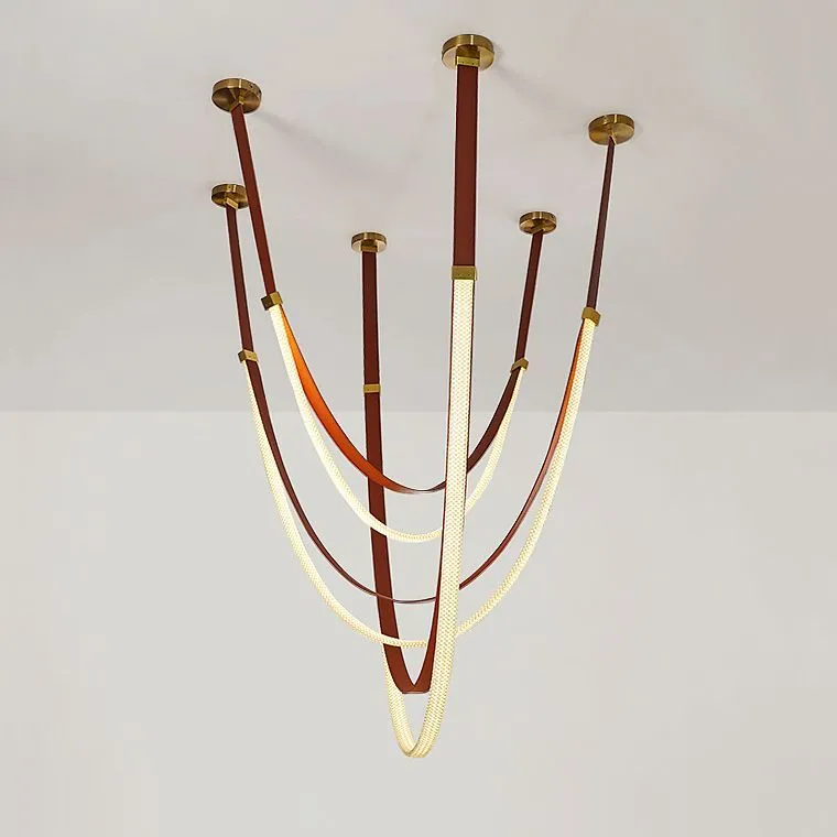 Представьте себе пространство, наполненное изысканностью и светом — серия уникальных светильников станет драгоценным акцентом вашего интерьера. Каждая из трёх инсталляций, входящих в комплект, создана с безупречным вниманием к деталям. Комбинация ремней из благородной коричневой кожи и гибкого силикона, заключённого в текстильную оплётку, создает ощущение гармонии и тепла.