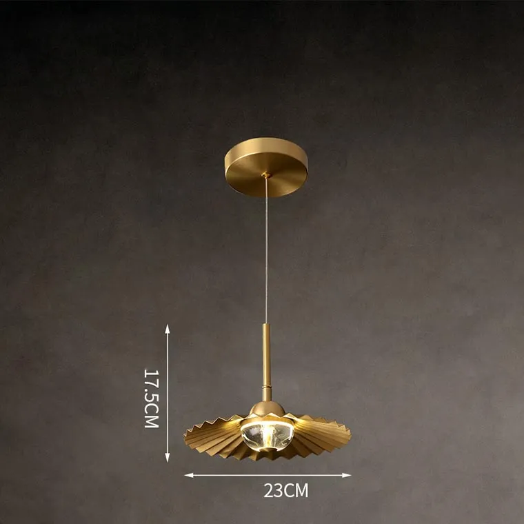Подвесной светильник с шарообразным плафоном под гофрированным абажуром