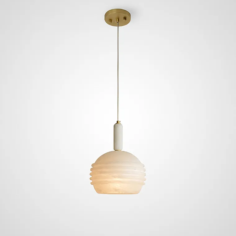 Подвесной светильник с рельефным абажуром из натурального белого мрамора на латунном креплении