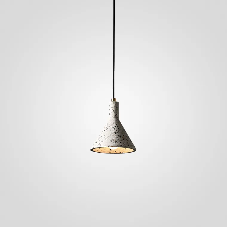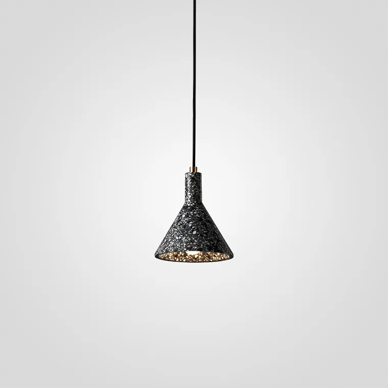 Серия подвесных светильников с конусообразными плафонами из мрамора терраццо