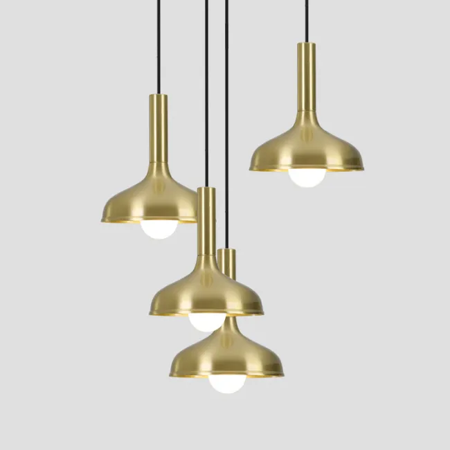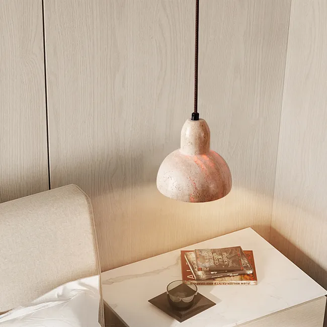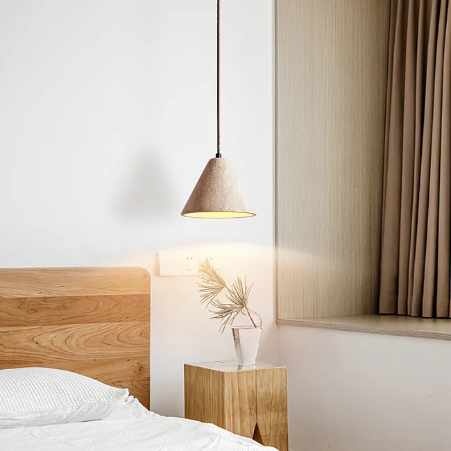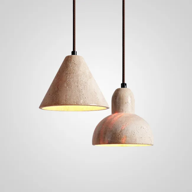 Серия подвесных светильников с конусообразными плафонами из мрамора терраццо