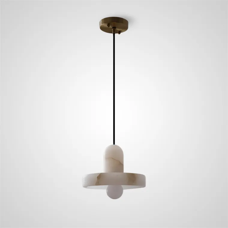 Подвесной светильник с дисковидным корпусом из испанского мрамора на латунном креплении