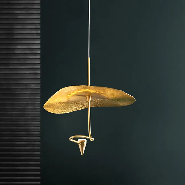 Дизайнерский подвесной светильник в виде листа лотоса, со светодиодным источником света. Каждый лист индивидуален, неповторим и полностью изготавливается вручную.