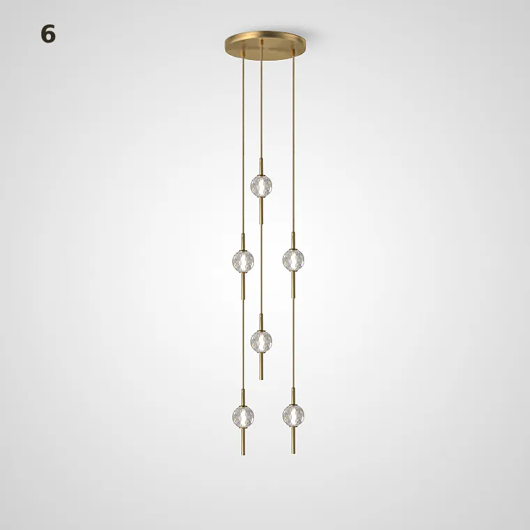 Готовая комбинация подвесных светодиодных светильников с хрустальными рассеивателями в виде многогранных шаров