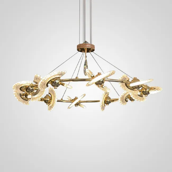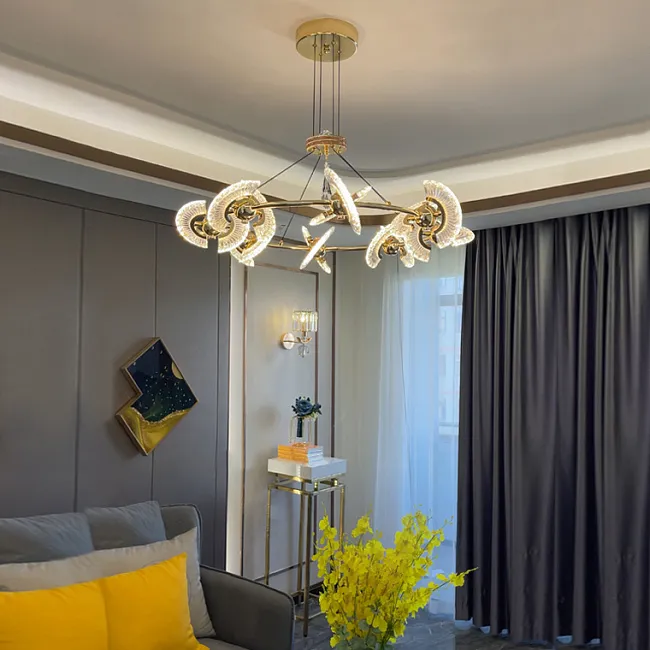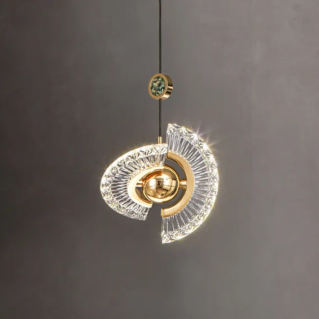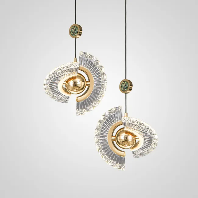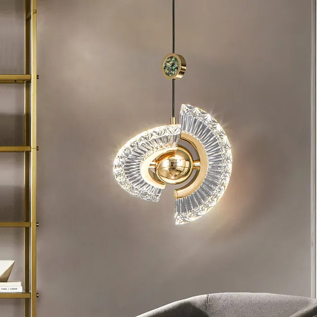 Подвесной светодиодный светильник с плафоном в виде комбинации двух ажурных поворотных лопастей и шаровидного центра