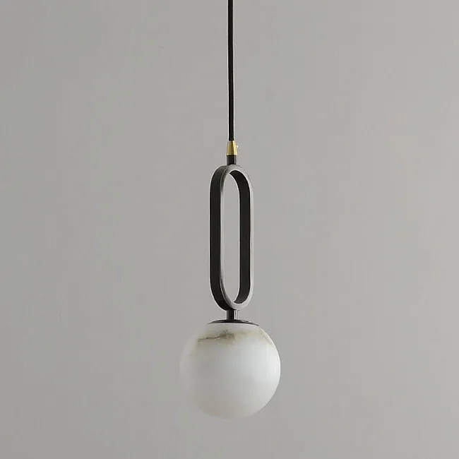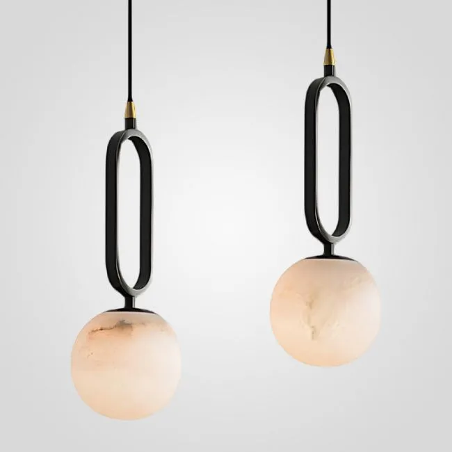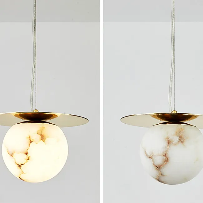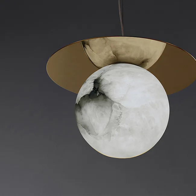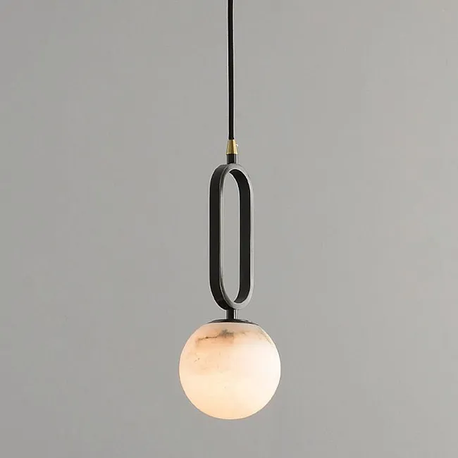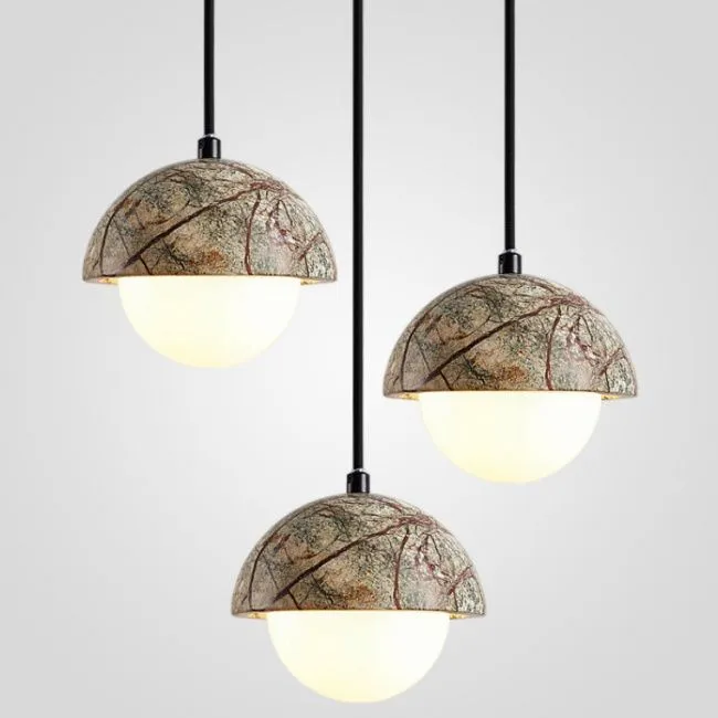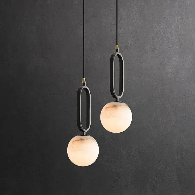 Серия подвесных светильников в форме шара из серого мрамора с разноцветными вкраплениями и регулируемым подъемным механизмом