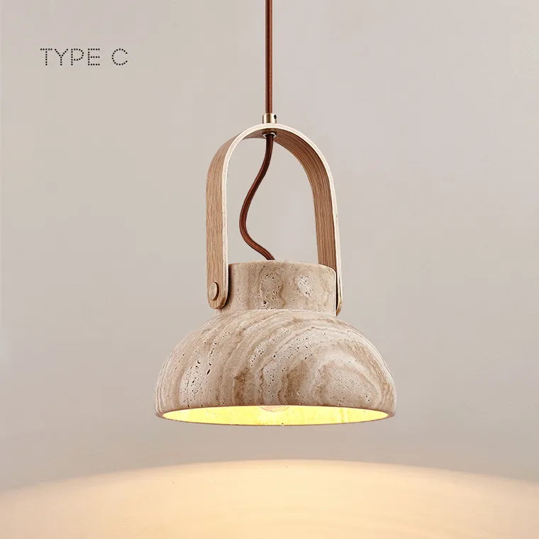 Серия подвесных светильников с трапециевидным корпусом из натурального травертина