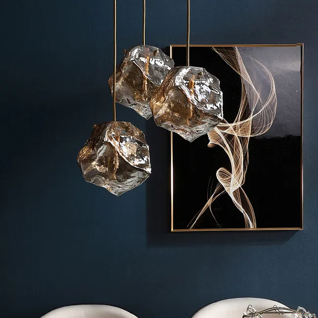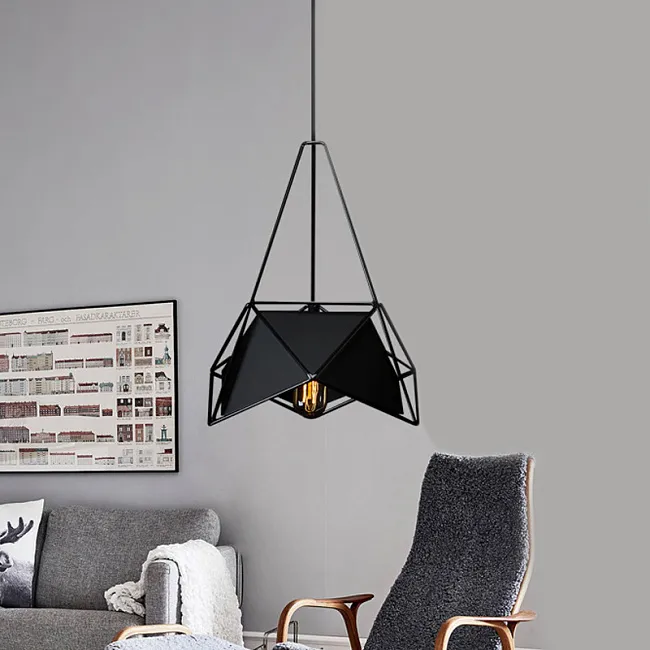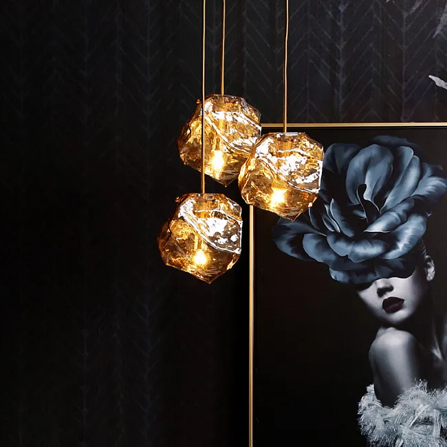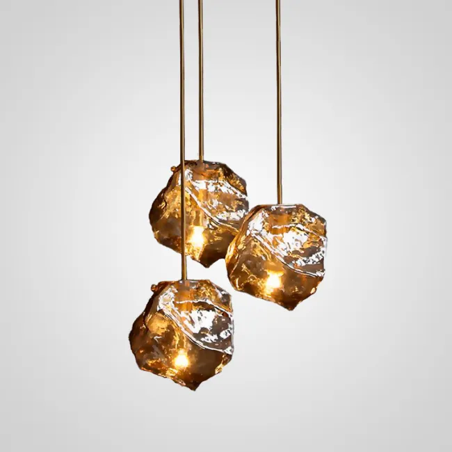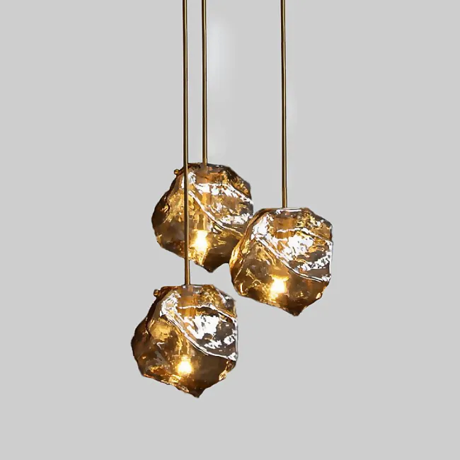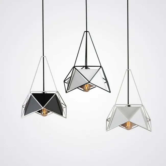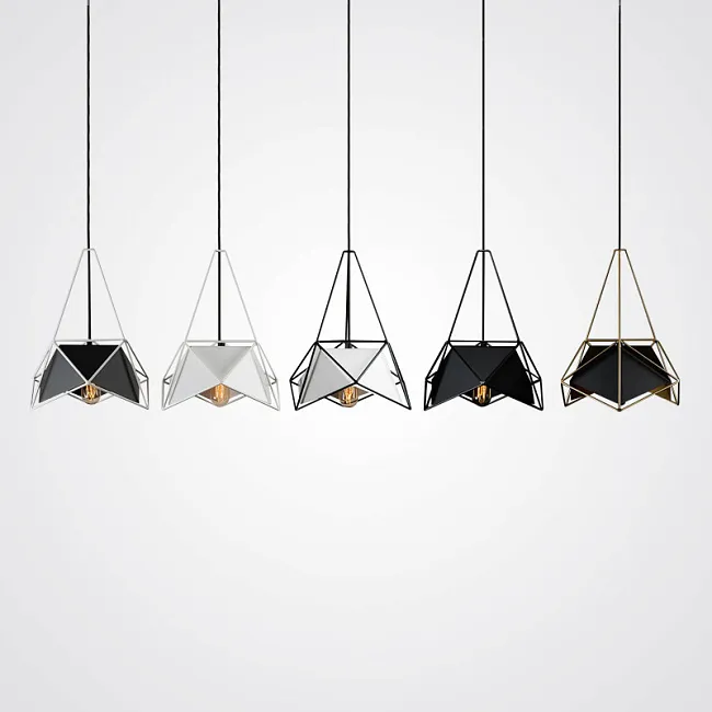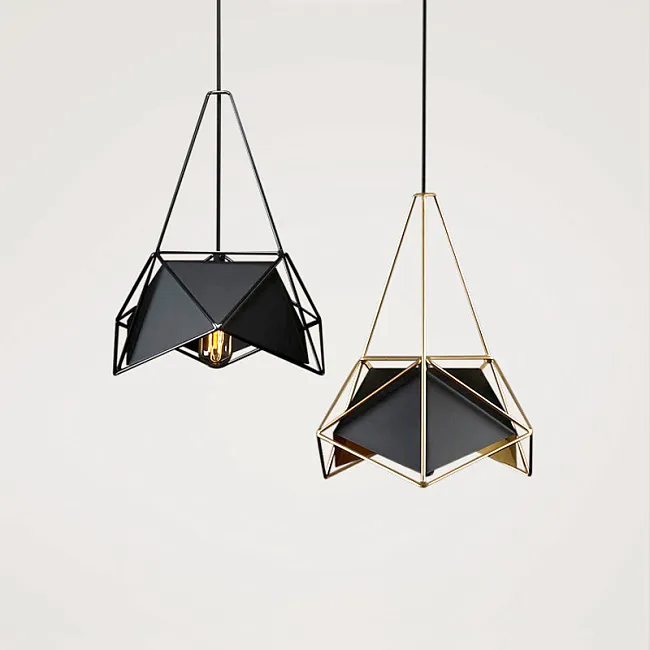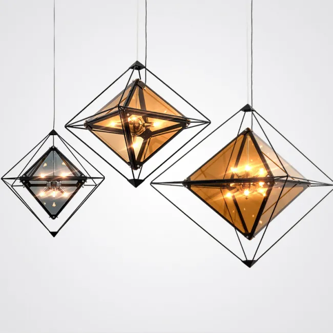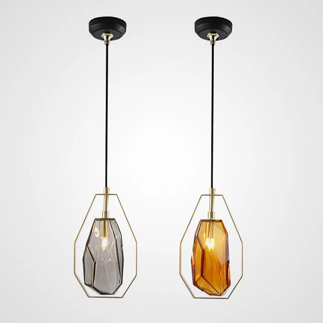 Дизайнерский подвесной светильник с хрустальным плафоном в виде кристалла внутри геометрического каркаса из металлических прутьев