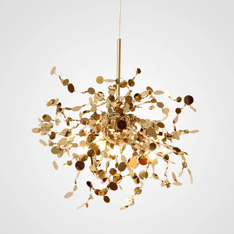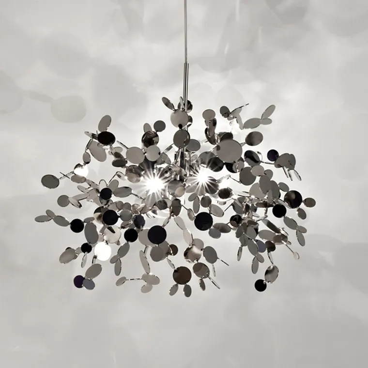 Подвесной светильник в стиле постмодерн – это свежее решение для современных интерьеров. Декорированный множеством металлических монеток, сплетенных между собой, он напоминает блестящее облачко. Модель представлена в двух расцветках – золотой и серебряной. Идеально украсит собой интерьеры в стиле лофт и постмодерн.