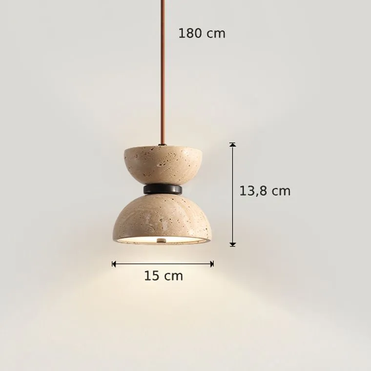 Подвесной светильник с двунаправленным купольным абажуром из камня травертина.