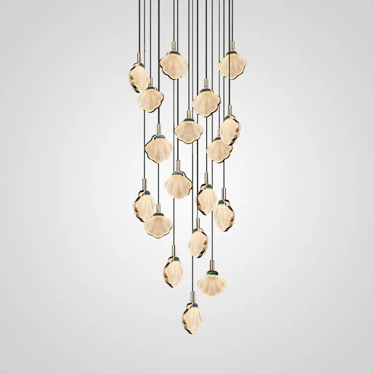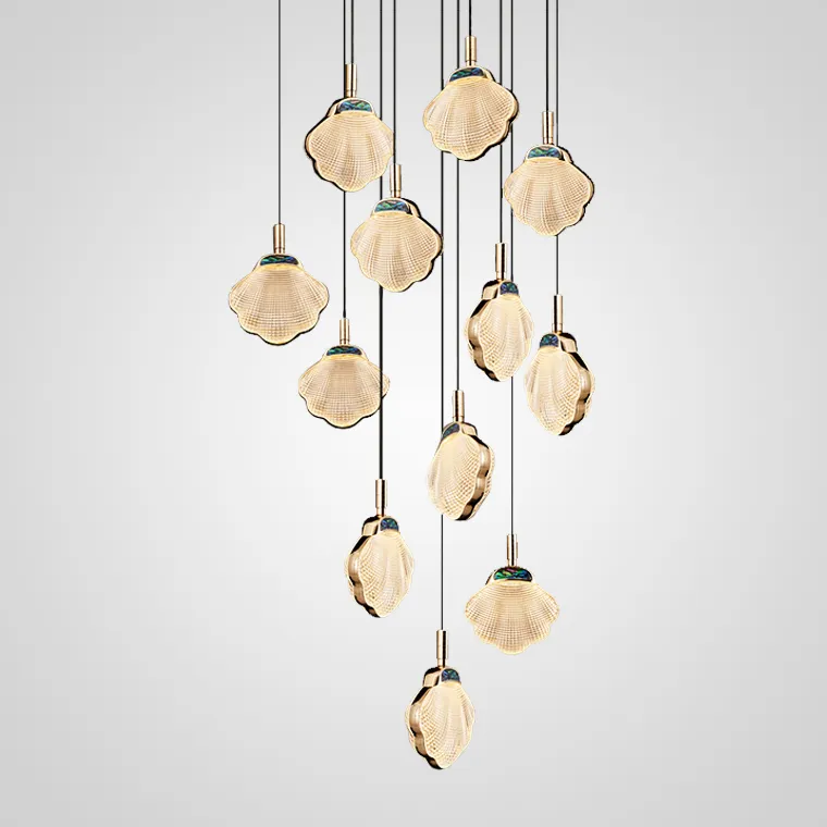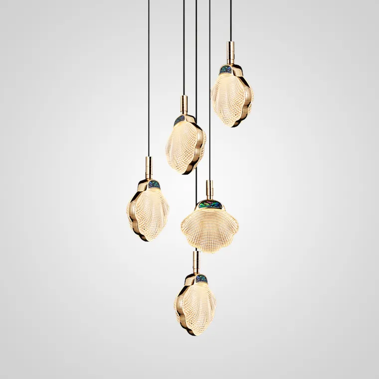 Готовая комбинация подвесных светодиодных светильников с рельефными плафонами в форме ракушек с перламутровыми вставками