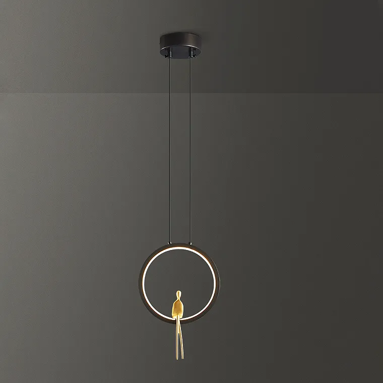 Серия подвесных светодиодных светильников с человеческой фигуркой на светящемся кольце из латуни