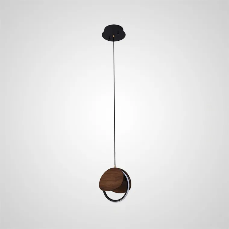 Подвесной светильник с круглыми деревянными накладками на светодиодном кольце