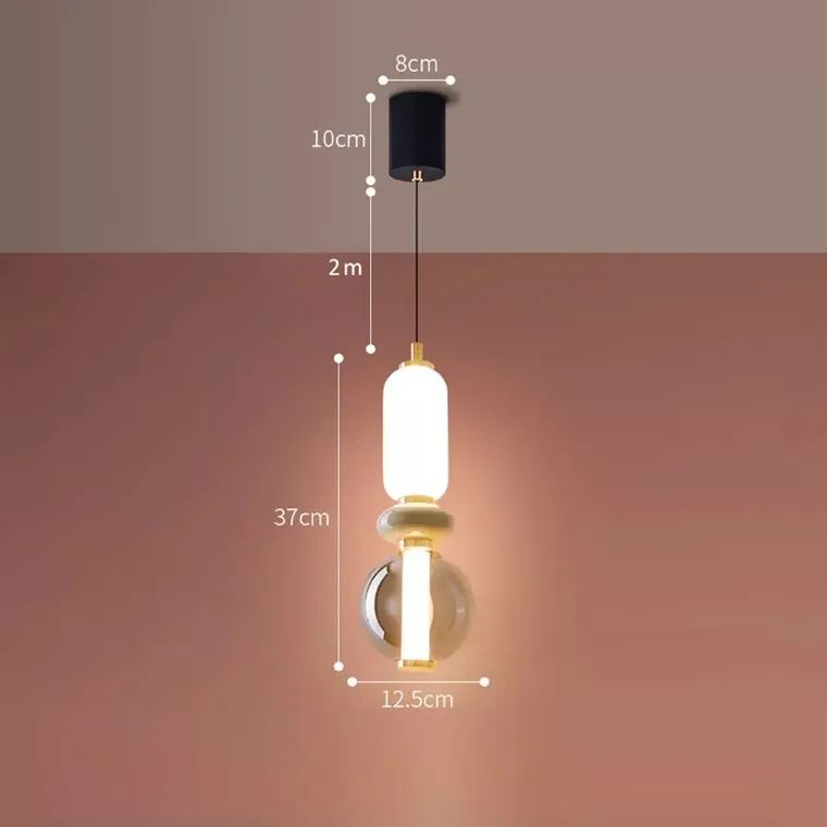 Габариты светильника составляют Ø 12.5 × 37 см, а потолочное крепление имеет размер Ø 8 × 10 см. Длина подвеса регулируется от 200 до 1300 мм, что позволяет настроить оптимальное освещение для любой высоты потолка. Мощность света равна 15 Вт, обеспечивая равномерное и яркое освещение.