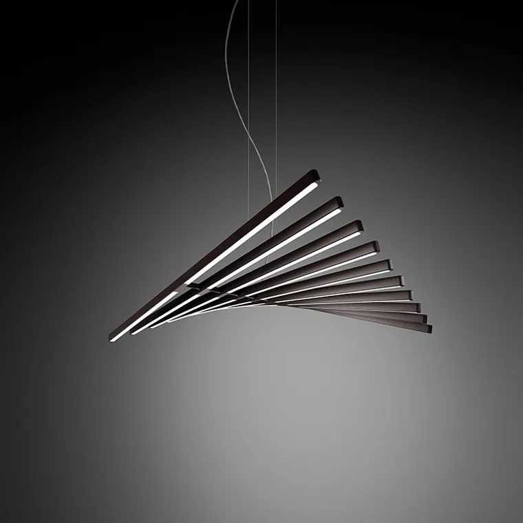 Дизайнерский подвесной светильник RITHM привлекает взгляд своим необычным дизайном. Струнный подвес украшен линейными плафонами, которые можно расположить в любом угле относительно друг друга, создавая уникальные волновые или разнонаправленные конструкции. Такой светильник превратит любое помещение в настоящий арт-объект, который подчеркнет стильность и современность интерьера. Высота подвеса составляет 200 см, что позволяет использовать его в помещениях разной высоты. Выполнен из высококачественных материалов - ПВХ и PMMA, которые обеспечивают долговечность эксплуатации. Светильник оснащен светодиодными лампами, обеспечивающими яркое и экономичное освещение. Доступен в 4 размерах и 2 цветах: черном и белом. Светильник RITHM - это отличный выбор для тех, кто хочет добавить в интерьер нотку футуризма и оригинальности.