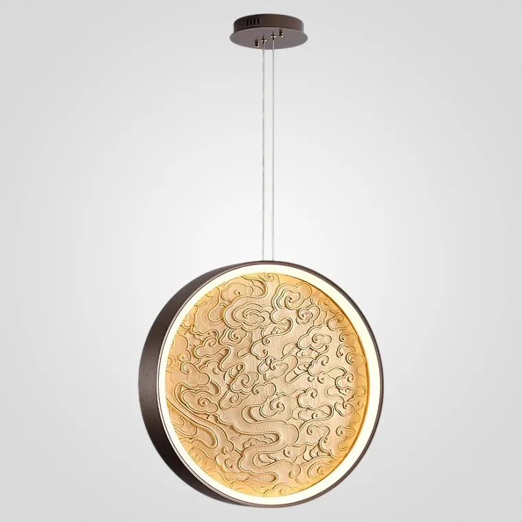 Подвесной светодиодный светильник в форме диска с резным плафоном