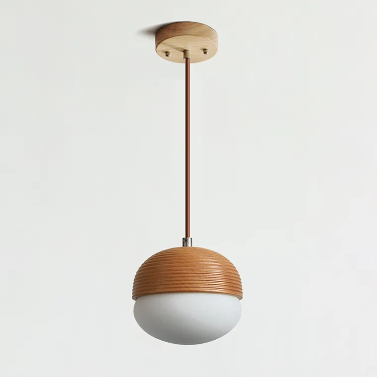 Подвесной светильник с шарообразным плафоном из стекла и дерева каштана