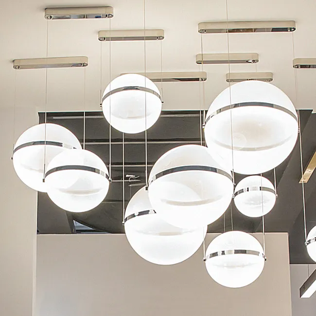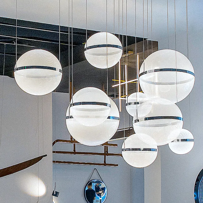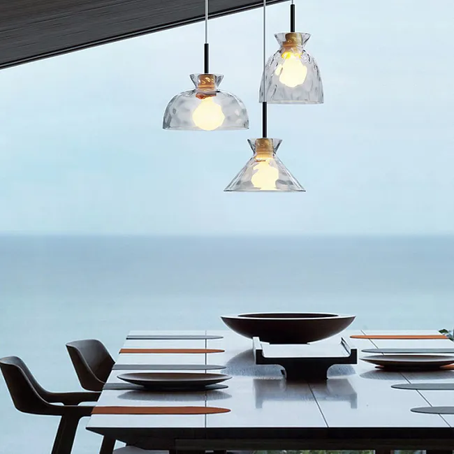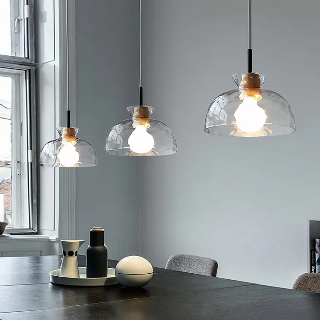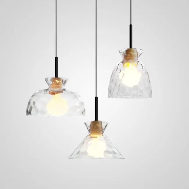 Подвесной светильник с шарообразным плафоном из стекла и дерева каштана